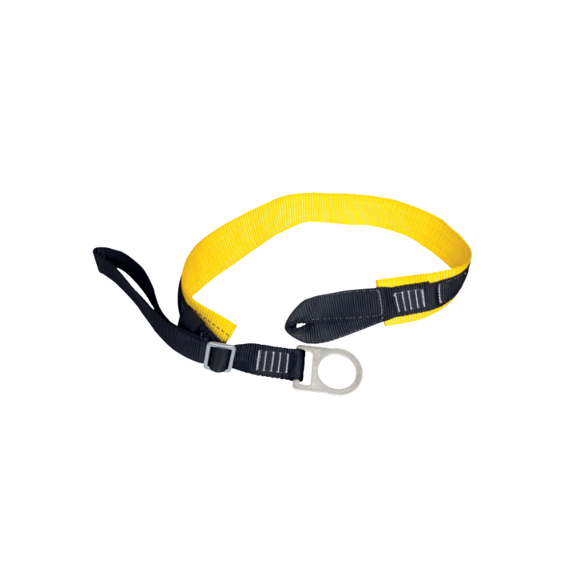 Conector de anclaje graduable en reata (tie off) Anclaje en reata poliéster de alta tenacidad. Un extremo ojete en reata, el otro con D de anclaje en acero. Hebilla graduable.